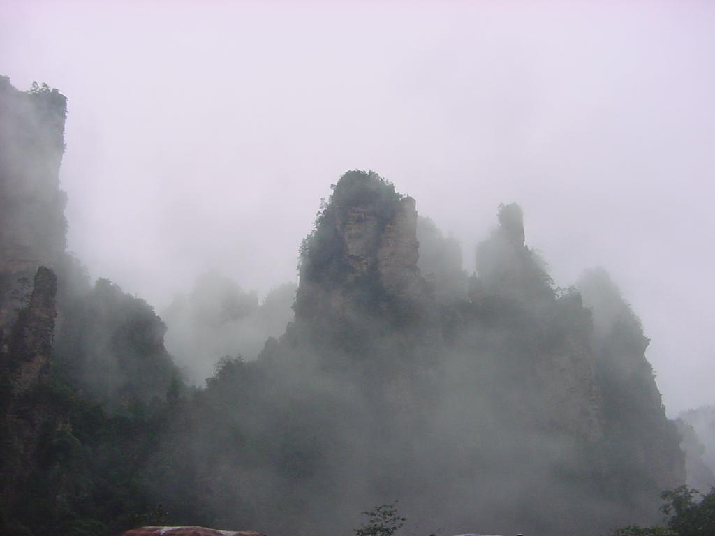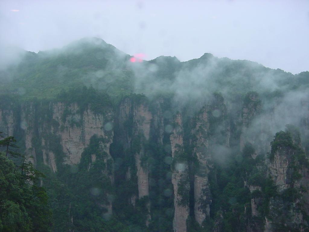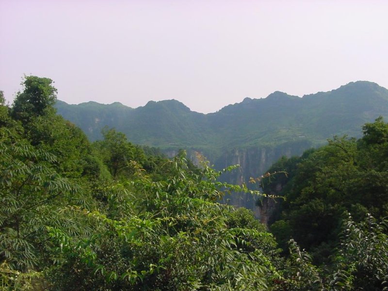 黃昏時,旅遊巴終於入o左張家界的外圍的慈利縣,有一點差點不記得,我們途經這個縣時,見到間酒店叫「慈姑大飯店」,真係搞鬼!一入O左張家界後就見到周圍一直上山之餘,旁邊的山景亦和香港的很不同,簡而言之,就是桂林的高原版,桂林的山是很isolated的,但張家界就