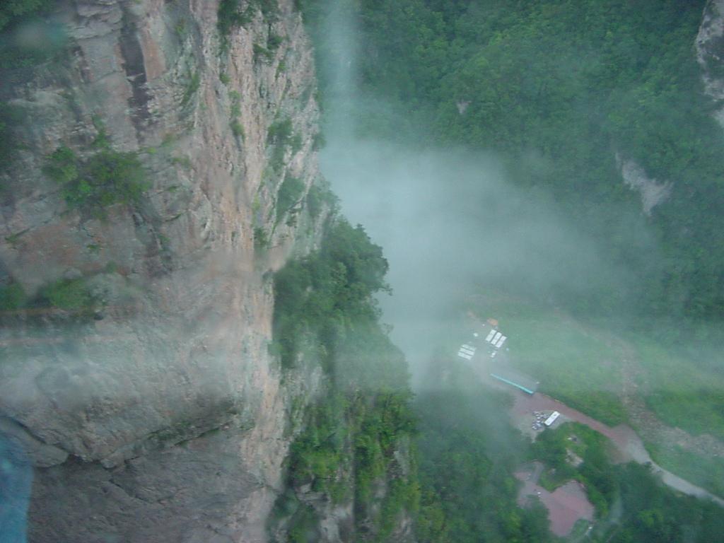 入到去,即刻要排隊坐所謂的環保車上山,那些環保車,其實只是普通的柴油巴士,不過為了壟斷景區遊覽車市場,因此景區只限自已公園的車載我們上山。之後我們坐上十多分鐘廿分鐘(睇番相片拍攝時間,此時只是8點正左右,真係早!)去「百龍電梯」這個點,準備坐電梯上山,不過由落車點去電梯要行一段樓梯,兼再穿過一段相當濕涼的隧道。去落車點附近的廁所都幾特別架,我記得有音樂聽架!落車點附近有個售票處,原來坐電梯是要另外俾錢,價錢約50-60元(我不記得了,早知當時影低) 之後在8:43-8:45坐電梯上山,據報該電梯有成數百米高,但只須坐三分鐘就到,而該部電梯是雙層設計的。之後早上的行程就相當沉悶了,來來去去都是行山、影相、坐車一個點去另一個點。 較特別的是下方11:02am影的即席整糖示範,睇完示範後,去等坐車時,見到周圍都是韓國人,那些韓國人聲大夾惡,打尖程度和祖國同胞直頭有得揮!那些韓國人大多數是中老年者居多,有男有女。在這一個點排隊等車好似等了45分鐘。