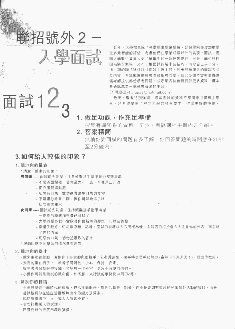 | 2002年度 金記 中七 謝師宴 (已舉行) | 有關JUPAS 面試需留意事項 |