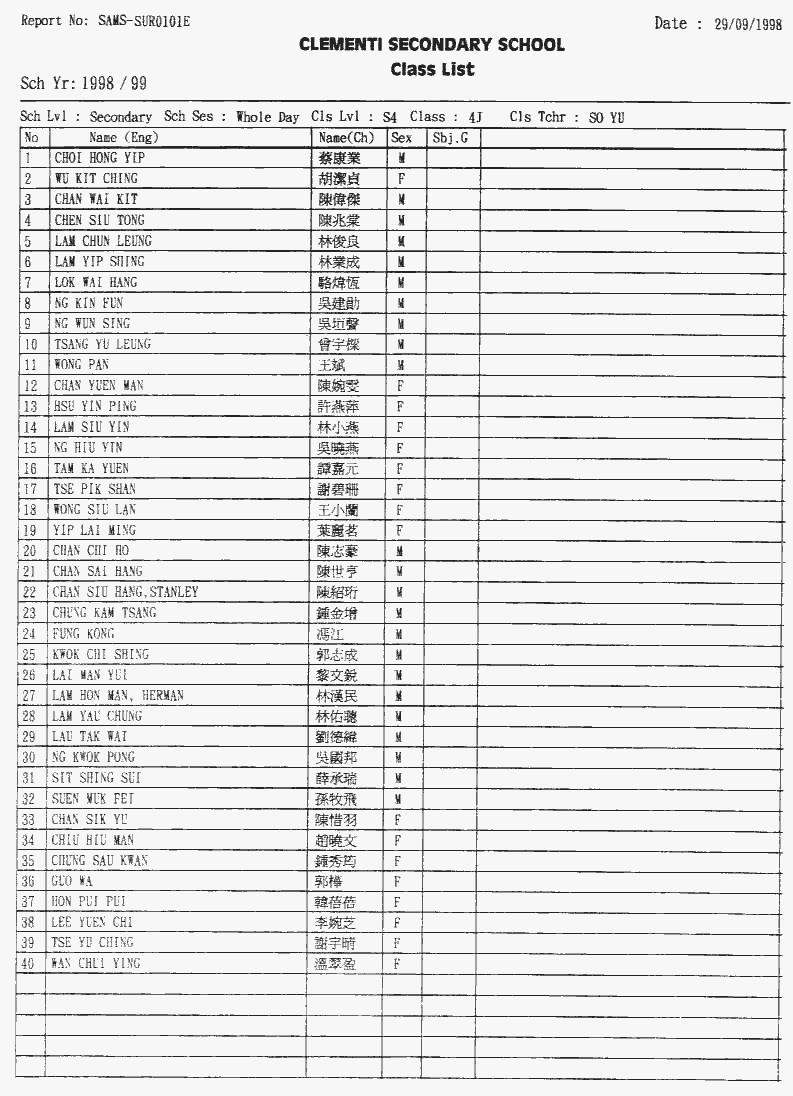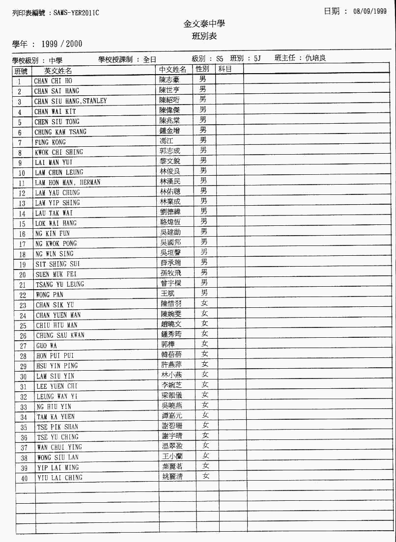 ※1998 - 1999年度 四忠班人名表 ※1999 - 2000 年度 五忠班人名表